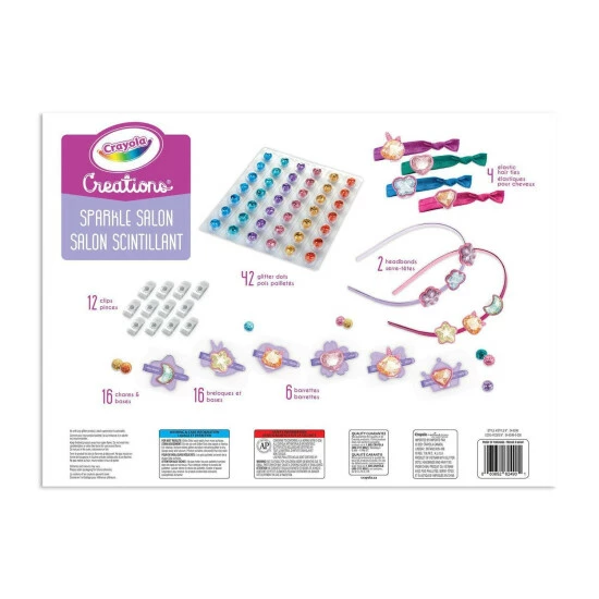 With the Crayola Glitter Dots Sparkle Salon kids can “squish to create” colorful, sparkly and wearable hair accessories. Using 8 fun charm designs with interchangeable clips, young salon stylists can mix and match for custom designs across the featured hair accessories. Get creative. The set encourages kids to express themselves with these easy-yet-beautiful crafts.