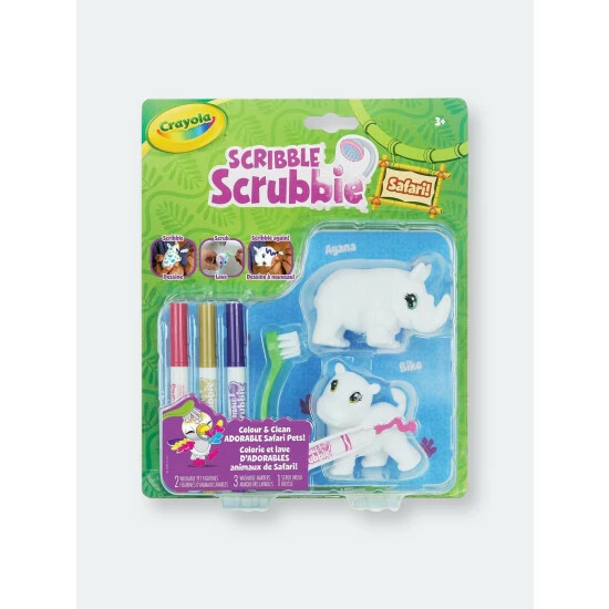 Each pack includes 2 safari animals, 1 scrub brush, and 3 washable markers Create new colorful coats as often as you like Additional expansion 2-packs sold separately for a total of 12 adorable animals. Collect them all